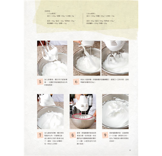 戚風蛋糕九成失敗的原因,都因為蛋白霜狀態不佳。蛋白霜製作得好壞,可說和戚風蛋糕息息相關。而且,如果蛋白霜能製作成功,其他甜點的蛋白霜也會做得更好。