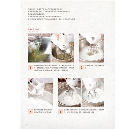 剛來戚風蛋糕教室的人,我會先教他們基本的原味蛋糕的作法,藉此讓他們熟悉戚風蛋糕。因為不加餡料和其他粉類,所以新手也能輕鬆學習。