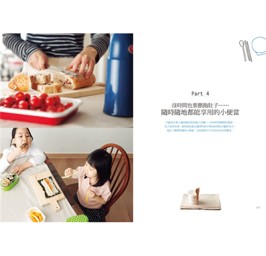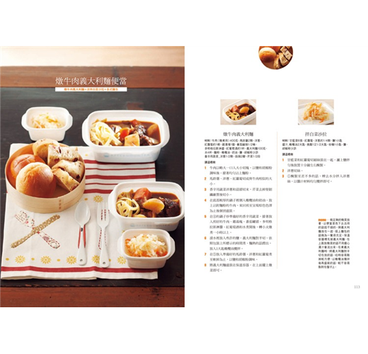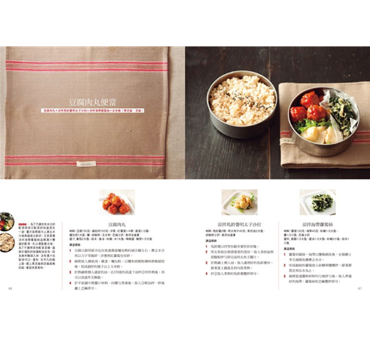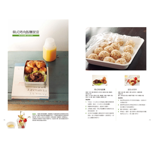 本書以樂活風的概念,表現均衡、美味與創新的便當食譜,低預算、步驟容易,日式、韓式、西式三種風格共42款的豐富便當組合,依對象別不同,分成適合大人的健康便當、小孩的點心盒、全家人的美味共享餐和方便吃的小便當等四個主題。同時也介紹了多達40種讓便當更豐盛的迷你飯捲、三明治捲和美味配菜,在日常生活中自由選擇、輕鬆搭配。