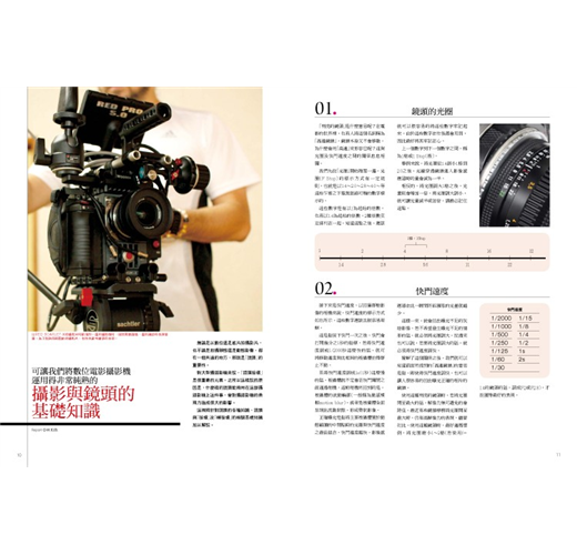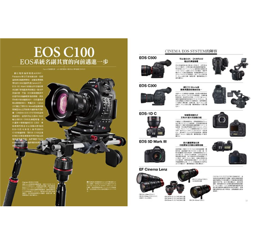 Canon EOS全系列數位單眼相機與電影機等,數位電影攝影機RED SCARLET-X,SONY NEX-FS700J,剪輯軟體Adobe Premiere CS6以及數位調光軟體DaVinci Resolve 9,等等非常精采的內容章節,