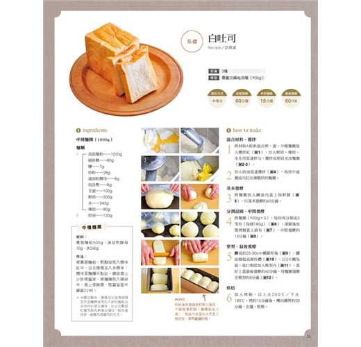 第一次做麵包的人,最害怕麵團成製的工序。本書將所有製作流程,用最詳盡的解說及完整的操作示範,怎麼開始、怎麼做,遇到狀況如何解決,以及製作時該注意的重點,技法全收錄,即便是新手,只要跟著作,也能輕鬆做出好吃的麵包。