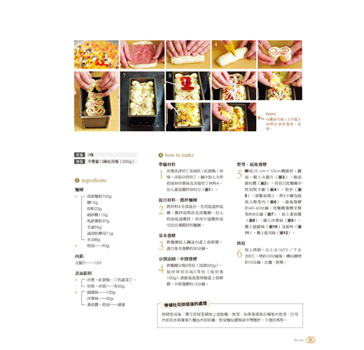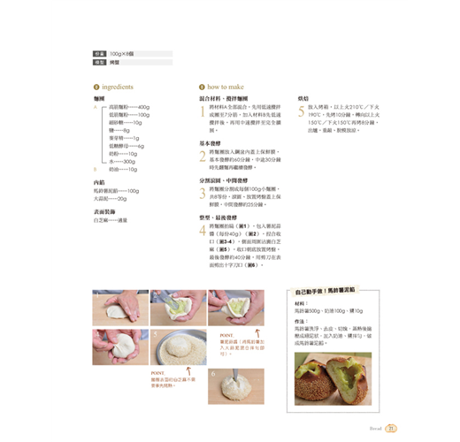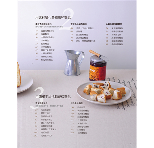 ◎附錄內餡、抹醬及花樣整型法,教您變化麵包造型,以及變化不同口味的豐富吃法。