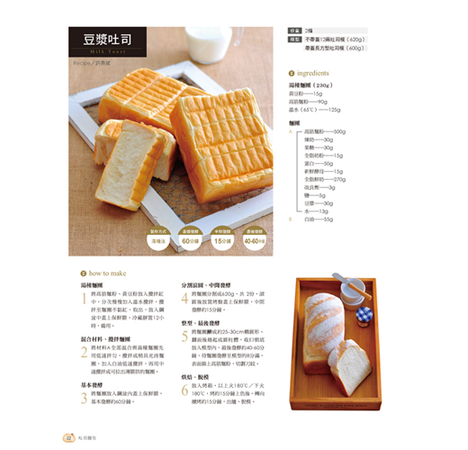 ◎每道麵包皆清楚標示「製作條件」,讓您快速掌握麵包製程。