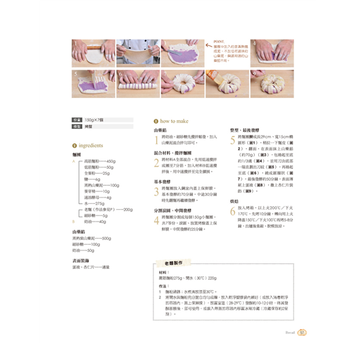 居家烘焙也能讓愛麵包的您心滿意足,除了美味又親民的吐司、香蔥、菠蘿麵包外,還結合了不同手法、口味變化的創意麵包──酒釀荔枝玫瑰麵包、大理石巧克力麵包、芭娜娜法露奇、玫瑰蛋糕吐司等多款人氣麵包,讓您在家也能吃到店家級的美味。