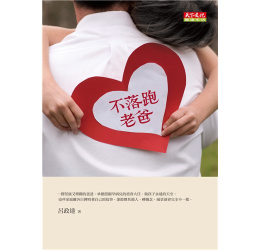 《不落跑老爸》這本書,描寫十位家有罕見疾病孩子的父親,勇敢地承擔起照顧孩子的重責大任,這些照顧絕對是艱辛又無止境的。相對地,有許多父親因承受不了這種無望的痛苦,離家出走。這些沒出逃的父親,乃被稱為「不落跑老爸」。