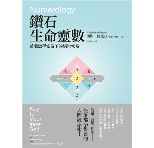 世界知名生命靈數家漢斯‧德寇茲(Hans Decoz)與優秀作家湯姆‧蒙特(Tom Monte)合寫的《鑽石生命靈數》提供了簡單易懂的指南,幫助讀者瞭解生命靈數的基本概念與應用。讀者可以利用本書提供的方法,依據基本的生命數字資料(生日與姓名),找出自己的天賦、生命挑戰、職業與個人成長等人生重大課題。