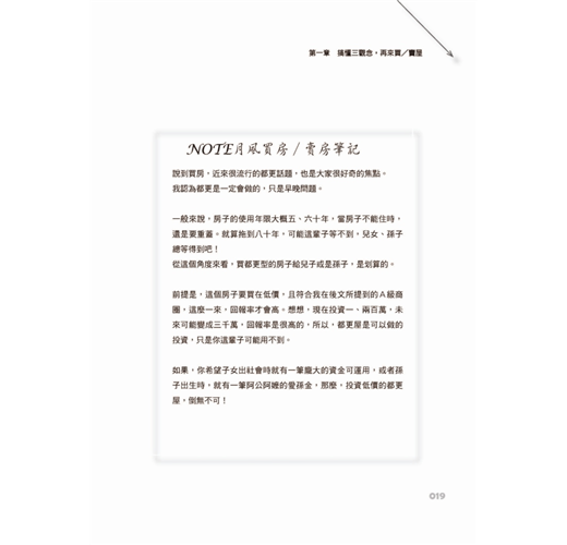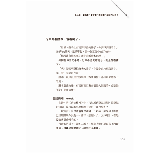 換句話說,不論是自住或投資;不論你現在想買屋或賣屋,在這本書中,都可以看到「買屋/賣屋」該注意的事情及方法。