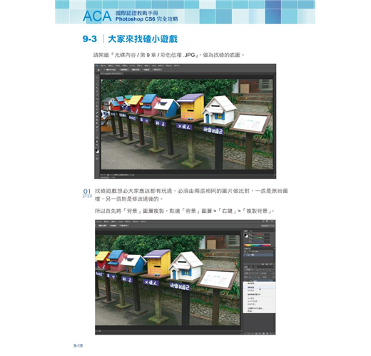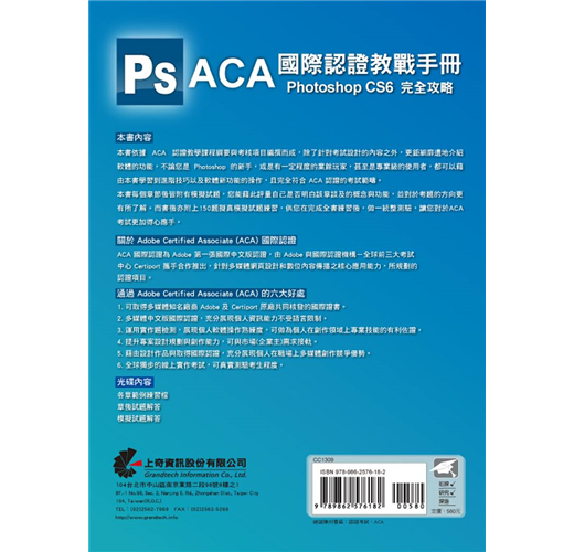 本書依據 ACA 認證教學課程綱要與考核項目編撰而成,除了針對考試設計的內容之外,更鉅細靡遺地介紹 Photoshop CS6 軟體的功能,不論您是Photoshop的新手,或是有一定程度的業餘玩家,甚至是專業級的使用者,都可以藉由本書學習到進階技巧以及軟體新功能的操作,且完全符合ACA認證的考試範疇。