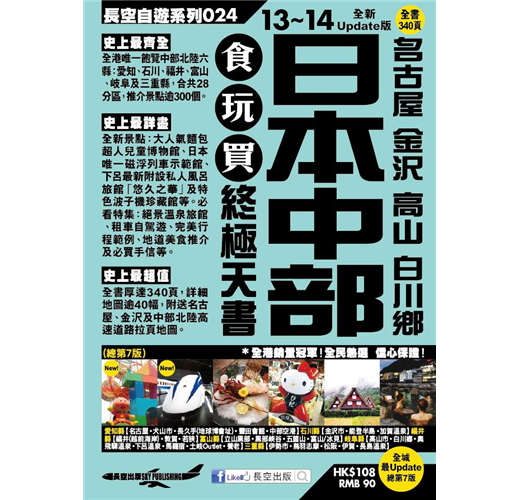 全書厚達340頁,詳細地圖逾40幅,附送名古屋、金沢及中部北陸高速道路拉頁地圖。