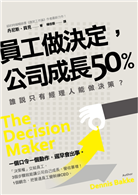 決策者策略的發起人、全球跨國前兩百大企業公司負責人、紐約時報暢銷書《微笑工作論》的作者丹尼斯‧貝克,告訴所有的經理人:「誰說只有主管/老闆可以做決定?」對公司影響最大的,不是老闆做出的決定,而是內部人員下的決策。「做決策」是讓人能夠快速成長的途徑,但是現實中,往往只有少數經理人願意把重大決策權交給下屬,員工學到的只有乖乖執行「主管」交付給他們的任務,如此一來,不只是工作中的樂趣,連想多付出一點的機會也遭到剝奪。