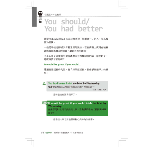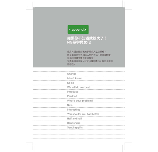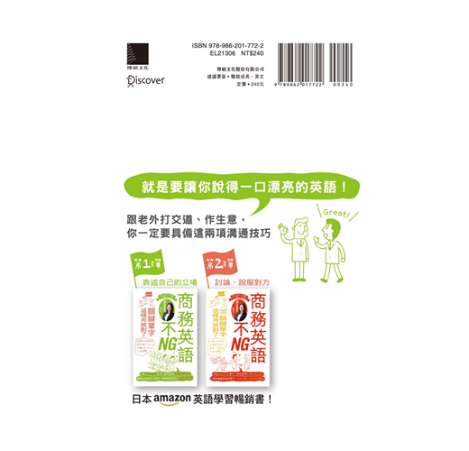 • 本書的系列作品『商務英語不NG-Email寫作用3句打通關』、『商務英語不NG-70+關鍵單字這樣用就對了』(Discover出版;博碩引進並出版中文版)、
