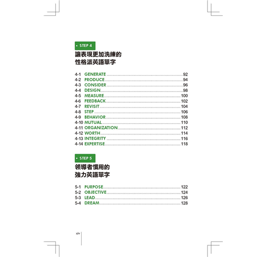 本書作者觀察到歐美名人所發表的演說,之所以能夠打動人心,其成功的關鍵就在於他們所使用的單字;這正好點出用字遣詞的重要性。但驚人的是,在這些演說中所運用到單字並非是艱澀冷闢,而是用得恰到好處。例如: