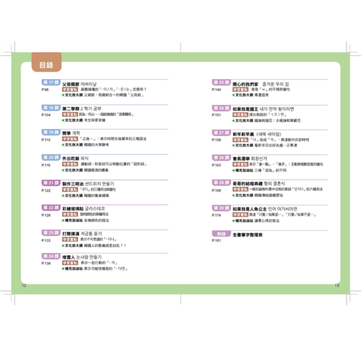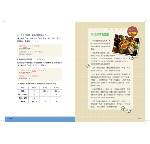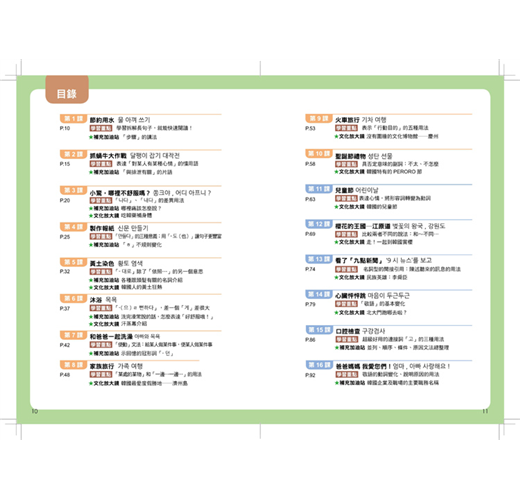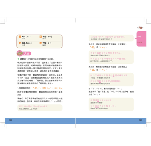 還有,「在閱讀文章後能學到什麼呢?」是我們最關心的問題,所以編輯部在短文後面,整理出本課所使用到的文法,並詳列句型變化及延伸活用,讓同學在閱讀後,能提昇自己的韓語能力。...
