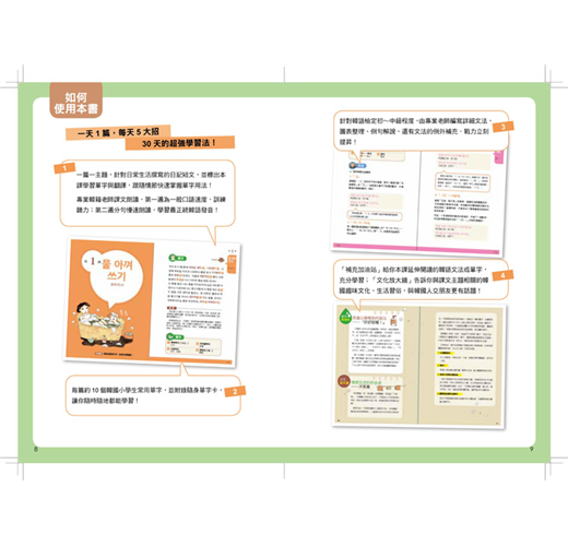 「在閱讀文章後能學到什麼呢?」是我們最關心的問題,所以編輯部整理出在基礎學習階段必備、也容易理解的單字、句型及文法,讓大家以淺顯易懂的方式,學閱讀,更同步體驗韓國小學生的日常生活!──槓桿韓國語創辦人/南承煥