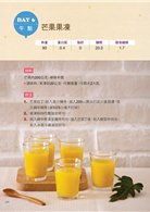 不論是正餐〈莧菜豆乾盒子〉、〈蜜黑豆壽司袋〉、〈蛋包飯+薰衣草茶〉、〈蔬菜義大利麵+菊花山楂茶〉、〈酸辣蔬菜鍋燒麵〉;或點心〈芒果果凍〉、〈奇異仙草冰沙〉、〈瘦身水果奶〉……天天讓你變換菜色,不飢餓、吃不膩、瘦得快。