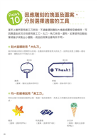 在迷你卡片、信箋組、禮品袋、標籤、腰封紙等小物上裝飾可愛個性的橡皮章圖樣,
