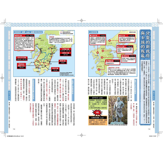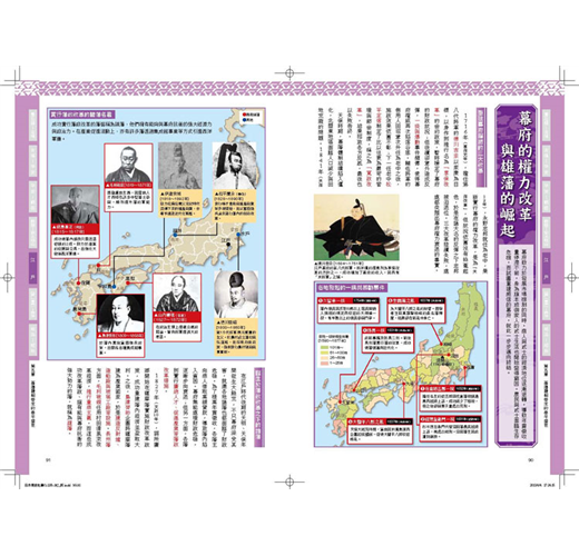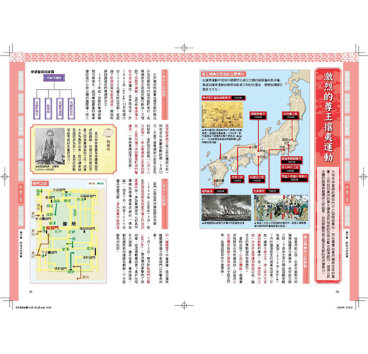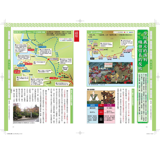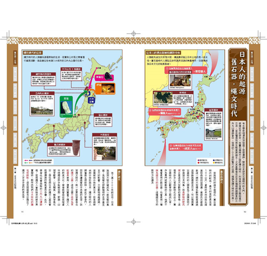 和一般史地書籍的區別是,本書的內頁編排以彩色地圖為主,不僅較文字類的歷史書籍更吸引人,地圖的位置輔助而更能幫助讀者瞭解日本史的進程,每張地圖都穿插簡潔扼要的說明,可以在最短的時間內、以最有效率的閱讀來建立對日本史的概念。