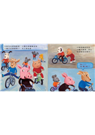 中午睡過午覺,老師說星期三下午「只有下課沒有上課」,小胖貓和同學立刻衝出教室。大家先在操場騎腳踏車,已經不需要輔助小輪的小豬和羊小弟開始互相較勁,只會騎「四輪」腳踏車的小胖貓則在一旁幫小狗扶車子。