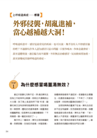 「與其治病於已發,不如防病於未然」,保養不是等到生病了才來服藥治療,「防病於未然」正是中醫的強項。本書完整揭示呼吸道的迷思破解,並提供生活中可實際運用的藥膳調理、穴位按摩和日常保健之道,讓身體築好第一道防火牆,做到「防病於未然」,全面終結感冒、咳嗽、鼻炎、氣喘、肺炎……等呼吸道症狀,讓你『顧好呼吸道,健康活百歲』!
