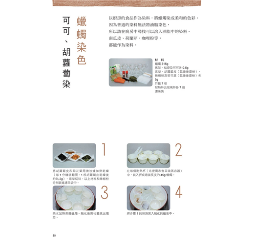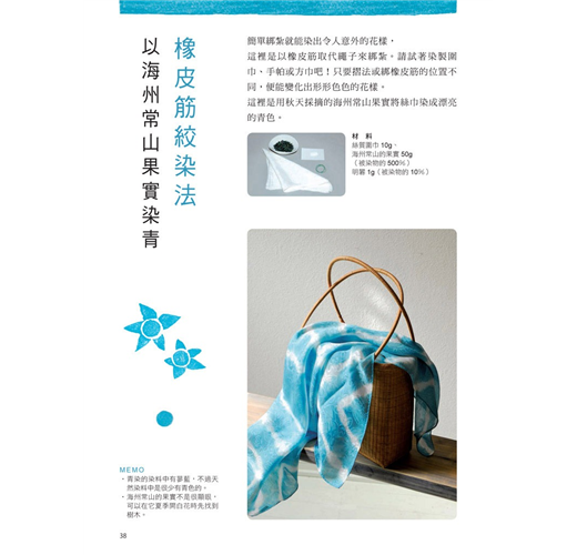 想要染出花紋圖樣?沒問題!9種布料摺法加上橡皮筋綁紮絞染,就可以變化出無數種紋樣,還有可以將布料變半透明或變白色的特殊效果。玩膩了染布?貼心的作者也想到了這點,無論是想染木頭、皮革、蠟燭甚至紙張,通通不成問題!書末還附有重點整理,將煩瑣的染色原理條列說明,一目了然,讓您實務與理論兼具。最後,就讓我們親自動手體驗天然植物染的樂趣吧!