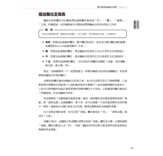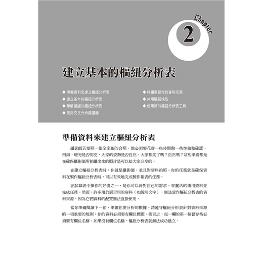 ‧以觀念引導為出發點,包含各種實務技巧,徹底掌握樞紐分析表的使用方法