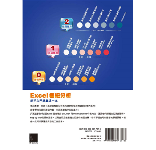 只要跟著全球公認Excel 首席專家-Bill Jelen 與 Mike Alexander作業方法,透過他們對概念的清楚闡釋、step by step的操作提示,以及實用且數量龐大的實作範例演練,若有不懂也可以觀看教學視訊檔,相信一定可以快速提昇您的工作效率。
