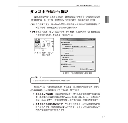 ‧內容由淺入深,初學者也可快速建立與建立樞紐分析圖與樞紐分析表