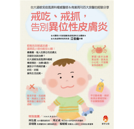 江伯倫教授長期照顧這些過敏的小朋友,是國內兒童過敏疾病治療和研究上最有經驗的專家之一,這次在《戒吃、戒抓,告別異位性皮膚炎》這本書中江教授將異位性皮膚炎的發病機轉、臨床症狀、治療原則和藥物等作一個完整的介紹,是異位性皮膚炎患童的重要照顧指南。