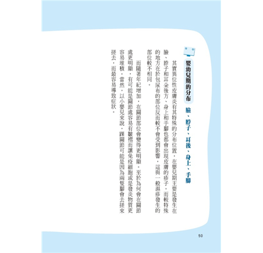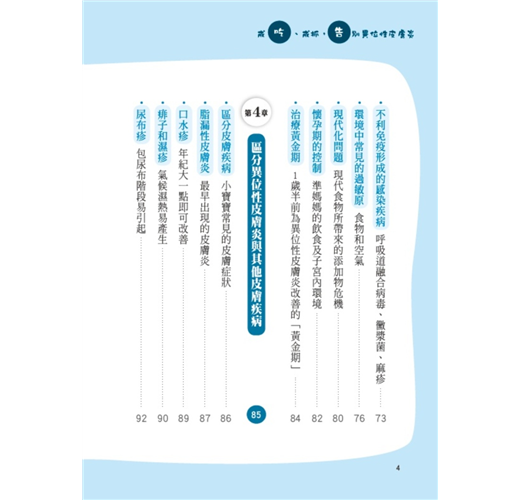 「異位性皮膚炎」可以從嬰幼兒就發生,也可以讓病人「癢不欲生」。如何吃?如何擦?如何避免抓?甚至用Q&A來近距離呈現父母常問的問題及專家的答案,這本書不僅實用而且專業。