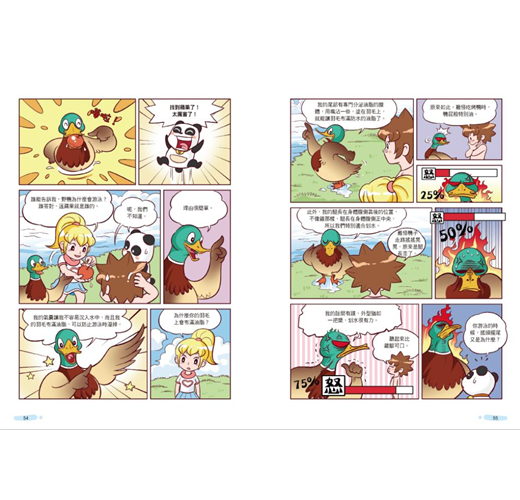 2. 漫畫內容幽默詼諧,且富有教育性,帶領孩子認識鳥類的構造、特殊行為和生活方式。
