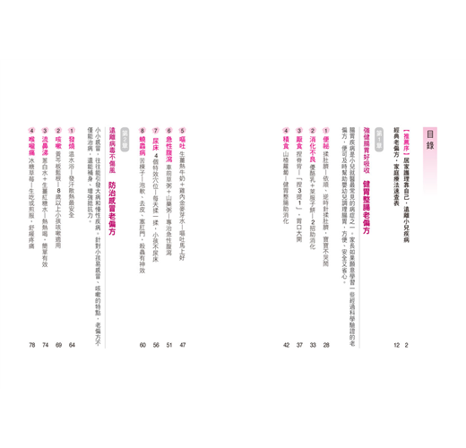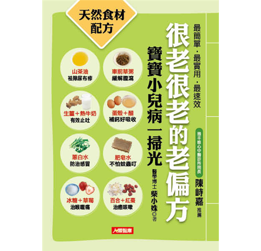 書中的老偏方,承傳了前人居家護理的精華,取材自天然食物,如生薑、蔥白、紅糖、牛乳等,與柴小姝醫師的臨床經驗結合,共同匯整成書。透過飲食、按摩、運動等方式,讓父母在家也能迅速緩解小兒的各種不適症狀。孩子身體健康,父母自然安心。