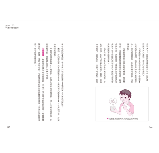 例如孩子嘔吐不止,可利用「生薑熱牛奶」來舒緩症狀;飲用「蔥白水」可提升免疫力,治療感冒、流鼻涕;塗抹「山茶油」可治療濕疹、尿布疹等。藉由生活中唾手可得的素材,就能發揮極佳的療效,父母,也能成為孩子最好的醫生。