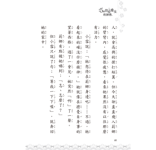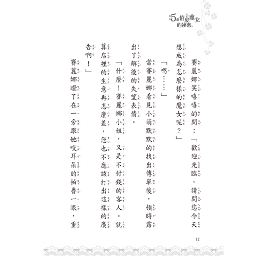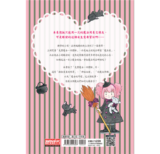 本書除了「免費魔女一日體驗」外,還有「撿拾星星的碎屑」、「神祕女孩」、「向魔女許願」以及「魔女的耳環」這五個故事,請看五個魔女們如何大顯身手!