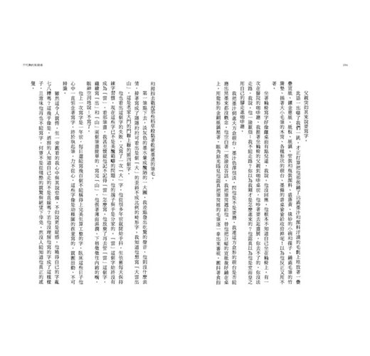他呆坐好一會兒,解開繩子,站起身,一人登上沙山。站在沙山頂,眼前金燦光輝萬丈,綿延沙稜波瀾壯闊,深谷一層跌宕一層的景象,驚心動魄。視線模糊起來。我也跟他一樣,眼球表面開始碎裂,將要瞎了吧?他心想。彷彿聽見自己的角膜發出像結冰的湖面在春日綻裂的清脆聲音。