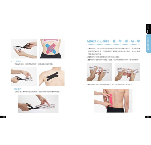 依據身體部位、傷害狀況或多層次貼紮,讓你3~5步驟即學即用。