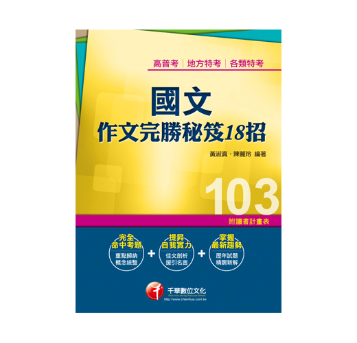 本書第18招收錄97~102年歷年試題及詳解,解析架構含【題目解析】、【寫作引導】、【名言佳句】,幫助讀者在準備之餘能更熟悉考題命題趨勢,做充分準備。