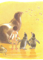 《我最喜歡洗澡》一書讓小小的浴缸展現出一個多彩多姿的想像世界:怕熱的大海龜、愛鬥嘴的企鵝雙胞胎、會吹泡泡的海狗、瞻小的河馬、噴雨如柱的大鯨魚,一一從浴缸冒出來——只有孩子會百分之百相信是真的。