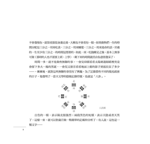 看作者有如神探般地大膽假設、縝密推理、小心求證,所得出來的結果,真要叫人拍案叫絕,不只為作者,更為了我們的老祖宗,他們在幾千年前的簡樸生活裡,怎會有如此的奇思妙想呢?要為一些有具體形象的事物造字,其實並不算太難,但要為純然抽象的事物造字,那真可謂古代的文創事業了。這也讓學習漢字多了另外一層功用──了解古人的生活型態與思想觀念。所以,漢字本身就構成了一套微型的中國人類文化史,可與文物典籍、考古發現相互援引佐證。