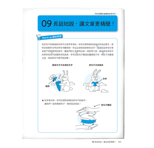 全書搭配生動插圖,有助於快速理解、記憶。掌握寫作的5大要素後,別忘了確實進行各單元的「寫作練習」,才能達到真正的效果。
