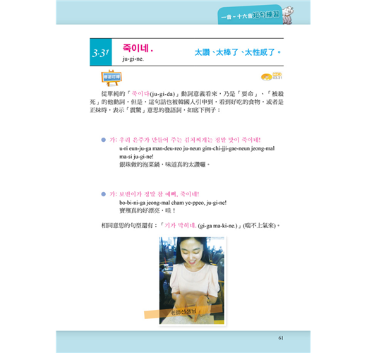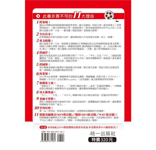 * 全國第一本用行動裝置學習韓語,特聘韓籍尹大勳老師錄製首爾腔發音示範影片(全書純韓語錄影/錄音),善用手機∕平板電腦利用『零碎時間』進修,成功的秘訣在於隨時隨地把握時機。
