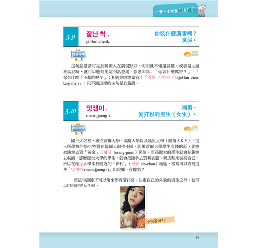 「被抓包了」、「拜金女」、「妳照片騙很大喔!」或者「你講話好酸喔」,用韓國語要怎麼說呢?最精準的中文語感解說,讓您體會到韓國語半語的魅力。