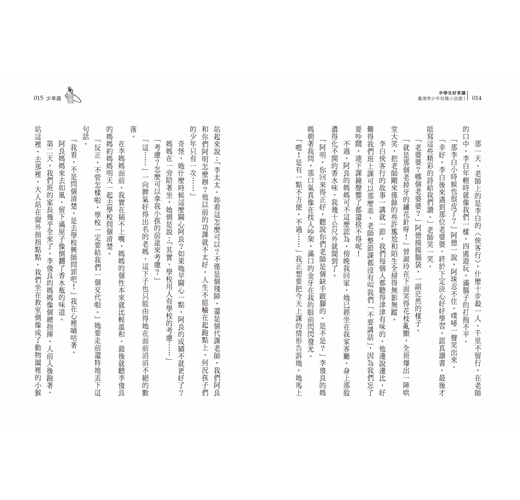 〈少年遊〉:金鼎獎作家王文華,以後座力極強的手法描寫一位代課老師如何用真摯的關心感動了頑劣的孩子和挑剔的家長,同時點出許多教育現場的問題。