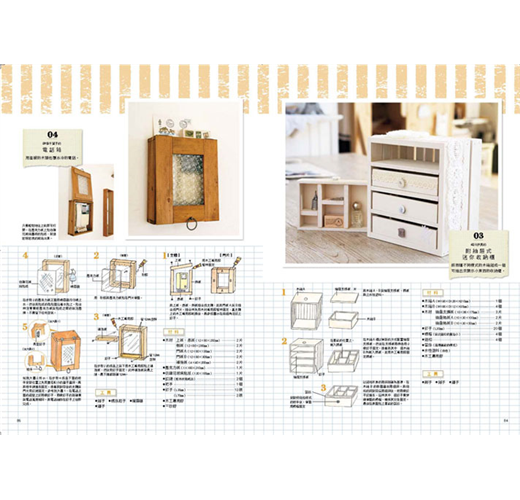 以女性講究實用與美觀的角度切入,書中收錄65件由她們親手製作、風格獨具的傢俱,每件作品都會從材料費、製作時間、尺寸裁切圖、所需材料工具到製作步驟等,鉅細靡遺地為讀者說明。尤其是製作步驟搭配清楚圖解,讓初學者一看就會。