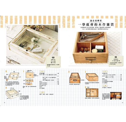 最後,書中更收錄數篇「木工DIY專欄」,收錄:您不可不知的木材知識、DIY工具與木材種類,並針對裁切、磨光、接合、上漆等技巧,也做了非常詳盡的解說。完全沒接觸過木工的朋友,非常適合從這一本開始進入木工的世界!