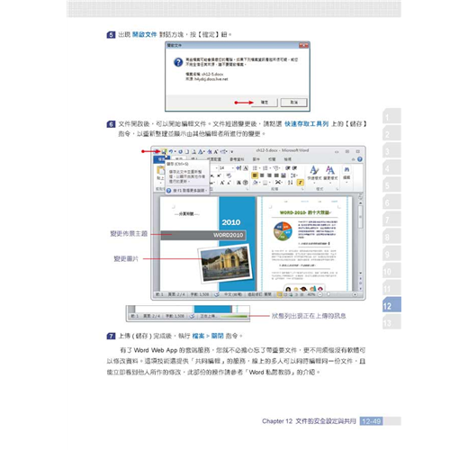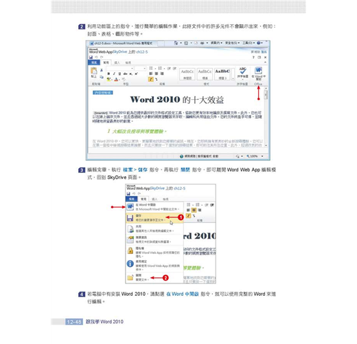 更有效率的翻譯功能、建立專業表格與絢麗圖表、改良過的圖片格式設定工具、文字與圖片的格式同步化、全新的內建Office主題與SmartArt圖形配置、輕易復原遺失的工作…,讓書中流暢的文字敘述,條理分明的步驟解說,帶您輕鬆跨越Word 2010的學習門檻!