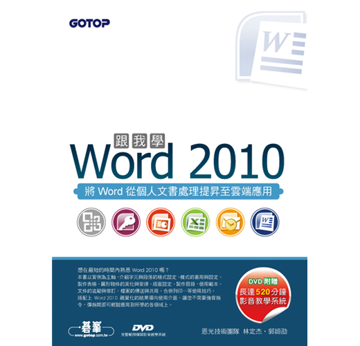 Word 2010以「結果導向」的使用介面提供了既靈活又便捷的整合功能,讓你更容易存取相關的資料,也許一開始的介面變化會有點不習慣,但只要跟著本書步驟,即使是Word 2003的使用者也能輕鬆找到想要的功能。
