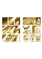 答:那些氛圍是真的曾經體驗過的,必須立刻畫在紙上呈現出來。所以,我所使用的色彩就是居住在那個地方時,殘留在眼裡的色彩。無論是在埃及還是在挪威,而這兩地的風景差異很大,幾乎相反。我試著回憶,在情節發生的那一個地方的主要色彩。在這方面,除了書裡的故事之外,我們也可以發展出一套屬於色彩的故事。在《每秒五千里》這本書裡,色彩之間有一種漸層交融,或是一種輪替,形成一個平行的故事,也是人物的故事。我的用色是很傳統的義大利漫畫方式,把色彩視為結構的一部分,而非只是背景,不是先畫完圖再塗上的東西。所以,我把色彩也當成一個主要人物。