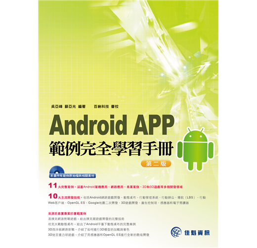 本書以Android手機綜合應用程式開發為主題,透過11個典型範例全面且深度地講解了單機應用、網路應用、商業案例、2D和3D遊戲等多個開發領域。