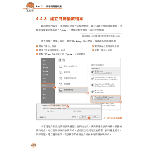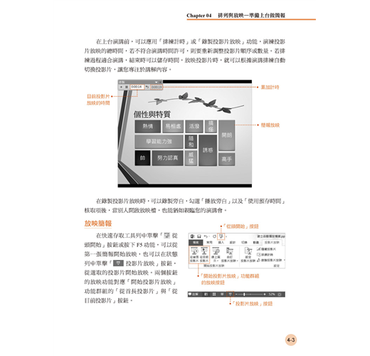 ‧初學應用基礎篇-個人履歷、簡報放映與排練。