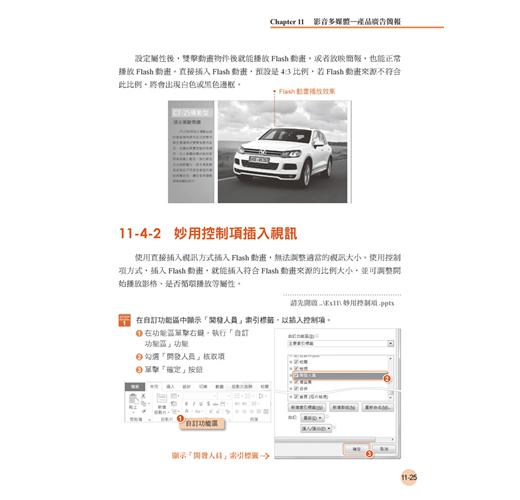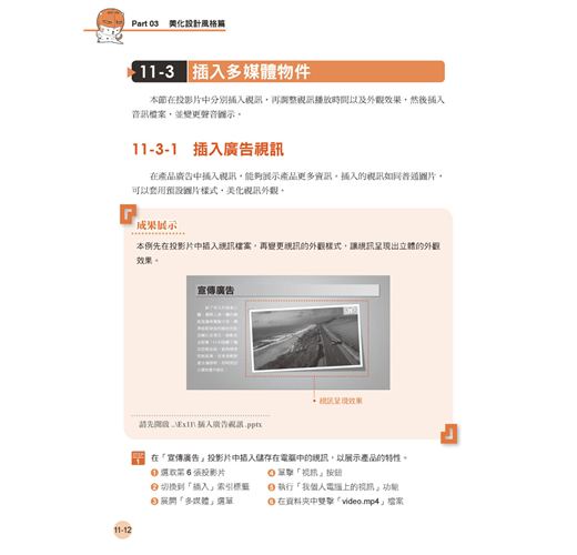 ‧美化設計風格篇-產品展示視訊、展場自動導覽、產品廣告簡報、教學簡報、綜合案例。